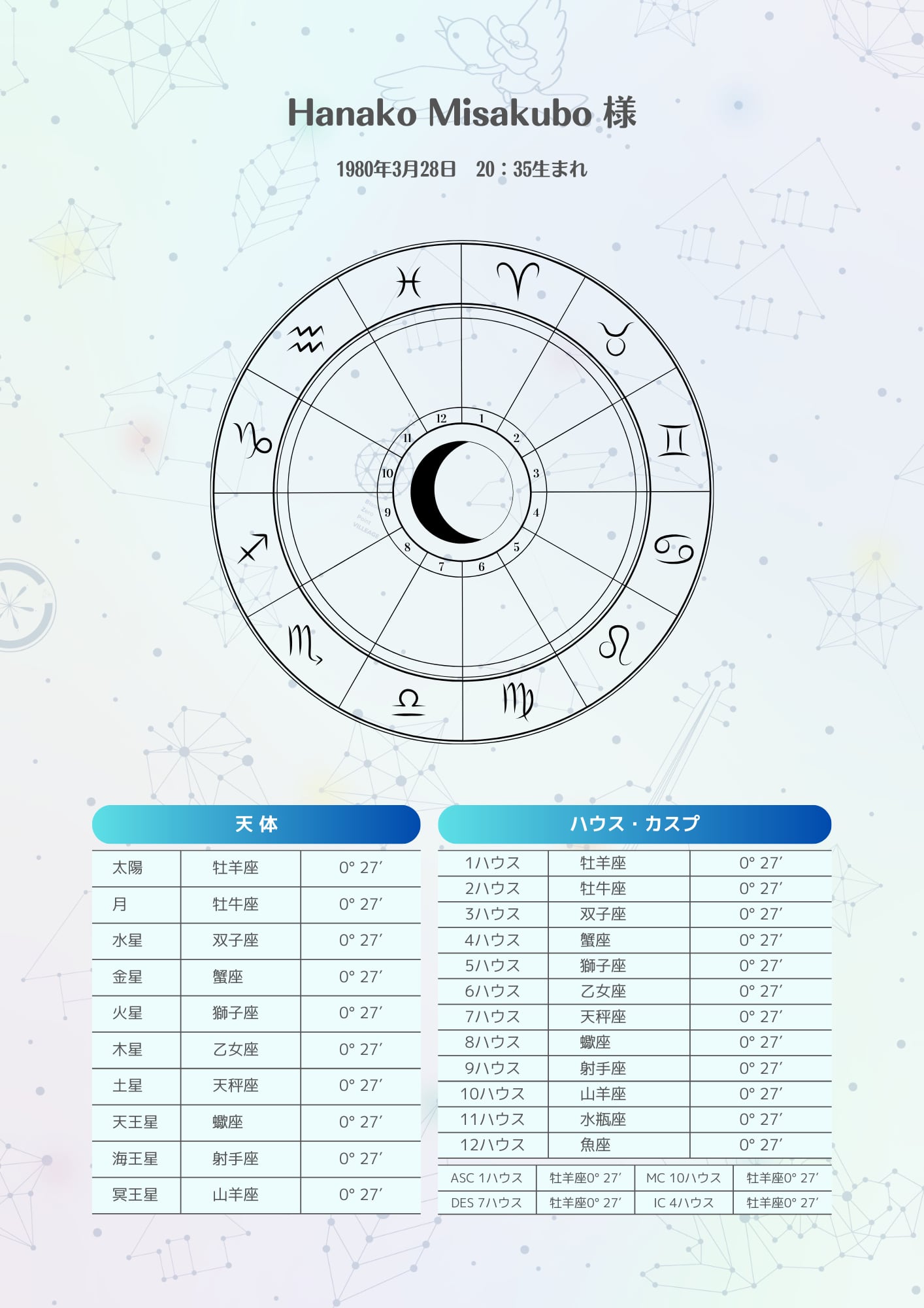 あなただけの星の地図 ホロスコープ鑑定書(完全オーダー / PDF納品)